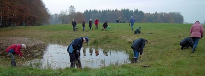 Viele fleissige Hände sorgten dafür dass die am Fledermauswald geplanten Arbeiten schnell erledigt waren - so blieb noch genügend Zeit für die anschliessende Kuchen- und Tee-/Kaffeepause.