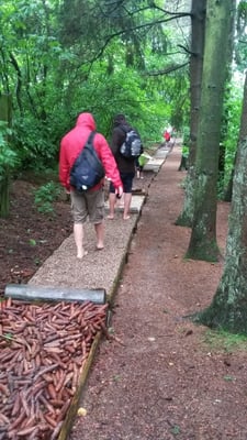 Auch wenn der ständige Regen nicht gerade der Freund aller ist, trotzen ihm am 01. Juli immerhin sieben Kinder mit Ihren Eltern und besuchten den Barfußpfad in Todesfelde.