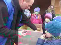 Des Weiteren suchten die Kinder mit Begeisterung Schnecken und fanden Bänder- und Schnirkelschnecken. Diese wurden mit einem von den NAJU-Betreuern vorbereiteten dünnflüssigen Mehl-/Wassergemisch, welches dünn auf den Handrücken aufgetragen werden konnte, "gefüttert". Die auf die Hand gesetzten Schnecken fingen sofort an, den dünnen Film auf der Haut abzuraspeln, so dass den Kindern und anwesenden Eltern eindrucksvoll vermittelt werden konnte, wie Schnecken ihre Nahrung aufnehmen.