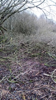 Die abgesägten Äste wurden am Rand aufgeschichtet und dienen bis sie verrottet sind als Totholz-Lebensraum.