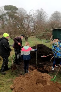 Apfelbaumpflanzung anlässlich des 70. Jubiläums der NABU-Gruppe Neumünster e. V. und des 7. Jubiläums der NAJU-Gruppe Neumünster