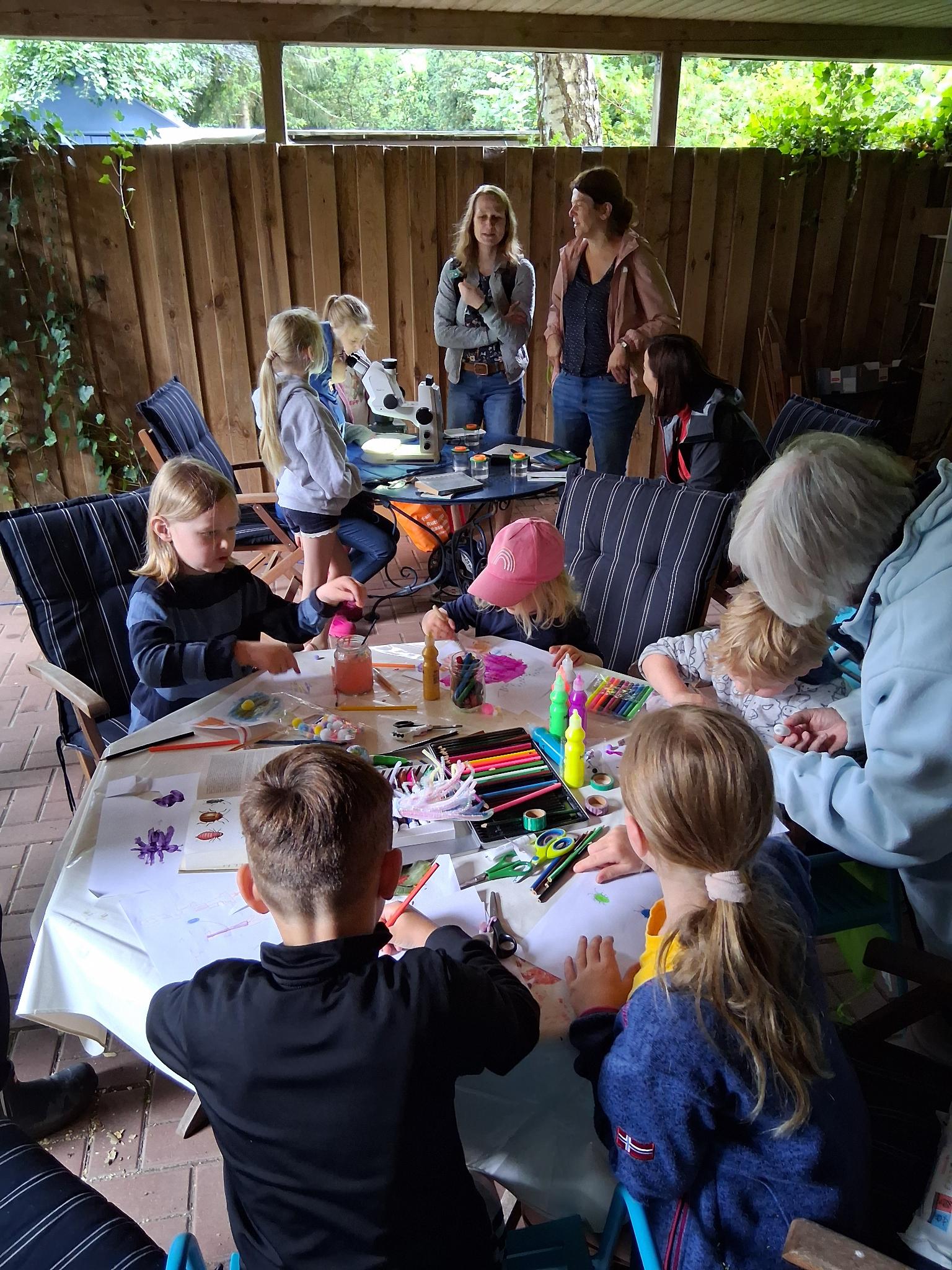 Möglichkeit hatte, das weiter zu vertiefen, was ihn interessierte. Da wurde gelesen, dort diskutiert oder gemalt. Letztlich landeten doch alle am Basteltisch und stellten wunderschöne,