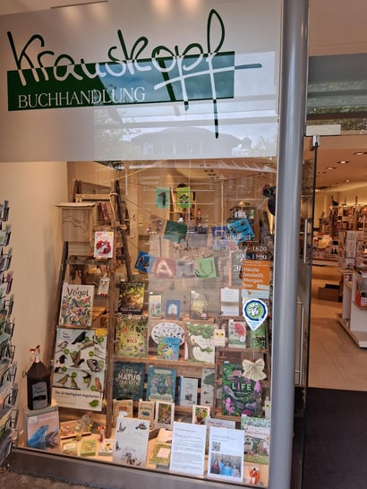 Anlässlich dieses Jubiläums durften die Kinder unserer NAJU-Gruppe das Schaufenster der Buchhandlung Krauskopf am Großflecken gestalten. Die Buchhandlung ergänzte die Fledermauskästen, Plakate und Basteleien mit thematisch passenden Büchern.